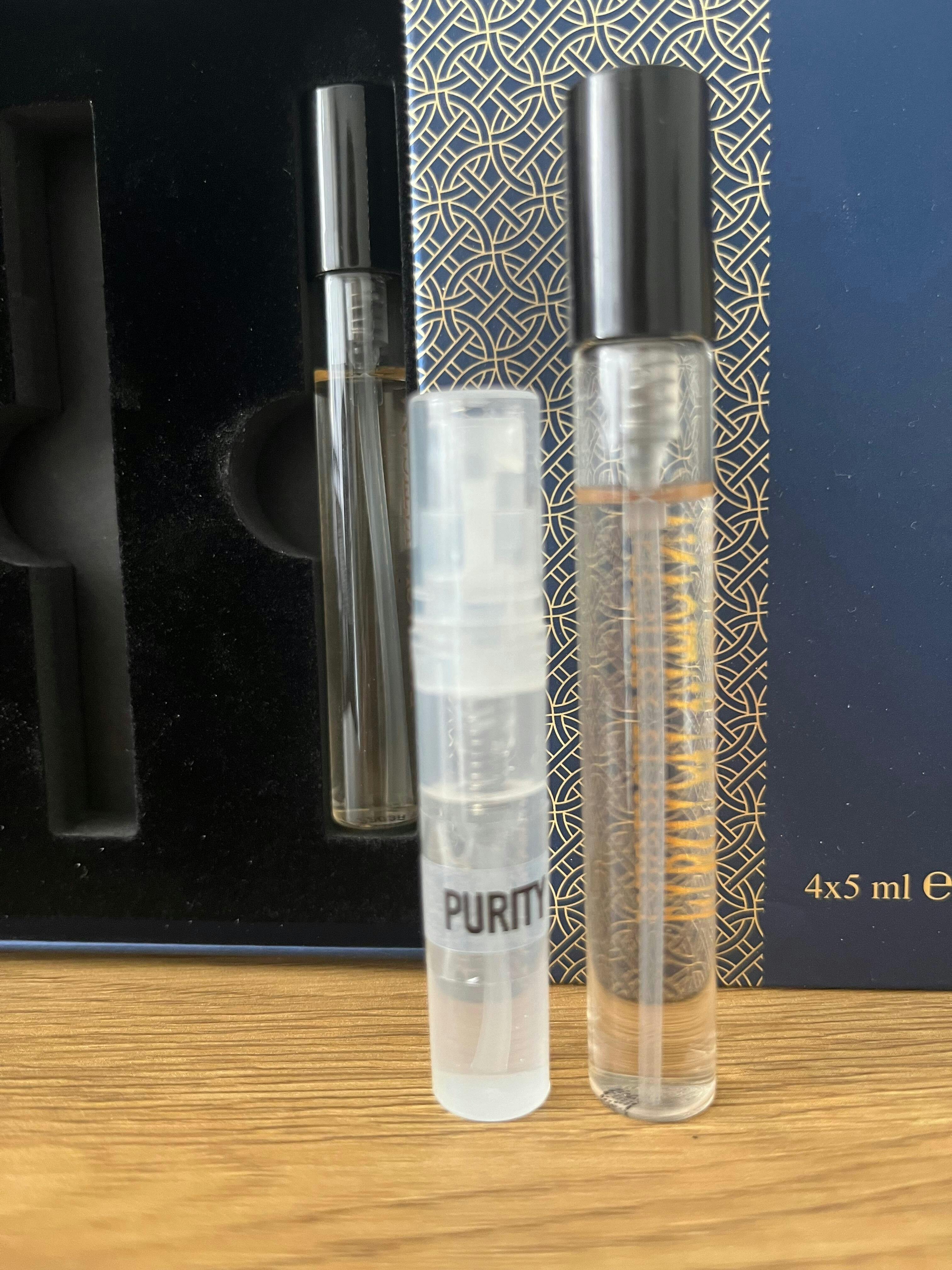 Ich habe im September drei Probensets (je 4×4 ml) bestellt, da ich den Duft „Purity Extreme Intense“ sowohl selbst noch einmal testen als auch zwei Sets als Geschenk für Freunde verwenden wollte.